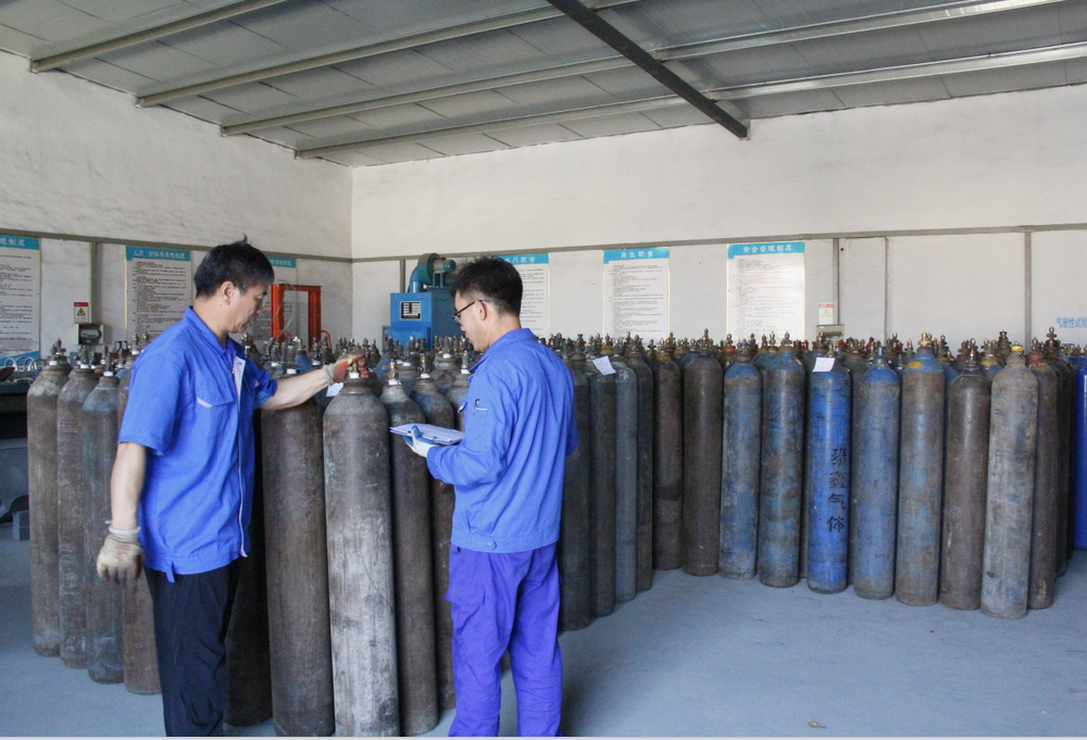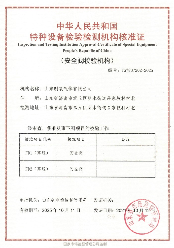 ??? 山東明氧氣體有限公司的前身為始建于1993年的章丘市明水氧氣廠,2020年12月企業(yè)由民營獨(dú)資轉(zhuǎn)型升級(jí)為山東明氧氣體有限公司,企業(yè)進(jìn)入新的發(fā)展階段。公司位于山東省濟(jì)南市章丘區(qū)明水街道杲家坡村村北,占地面積4000平方米,注冊資金500萬元,固定資產(chǎn)投資3000萬元,主要經(jīng)營項(xiàng)目為醫(yī)用氧氣、工業(yè)氧氣、氮?dú)?、高純氮?dú)?、氬氣、高純氬氣、高純氦氣、二氧化碳、混合氣體等各種工業(yè)氣體、高純氣體、混合氣體的充裝銷售、各類氣瓶的銷售、安全閥校驗(yàn)、鋼質(zhì)無縫氣瓶的檢驗(yàn)等。